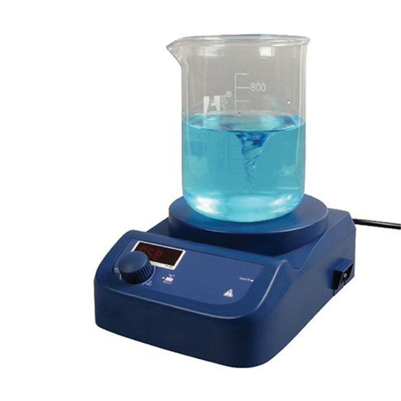 Affichage digital de la vitesse et de la température avec indication de danger lorsque température atteint 50 °C . Boitier étanche en ABS résistant aux produits chimiques Capacité d’agitation maximale : 3 litres Puissance de chauffage 500 W ; température maximale 280 °C ; plaque chauffante en céramique Diam.135 mm Régulateur de vitesse électronique de 100 à 1500 trs/min ; interrupteur marche arret . 220 x 160 x 95 mm ; 1,4 kg