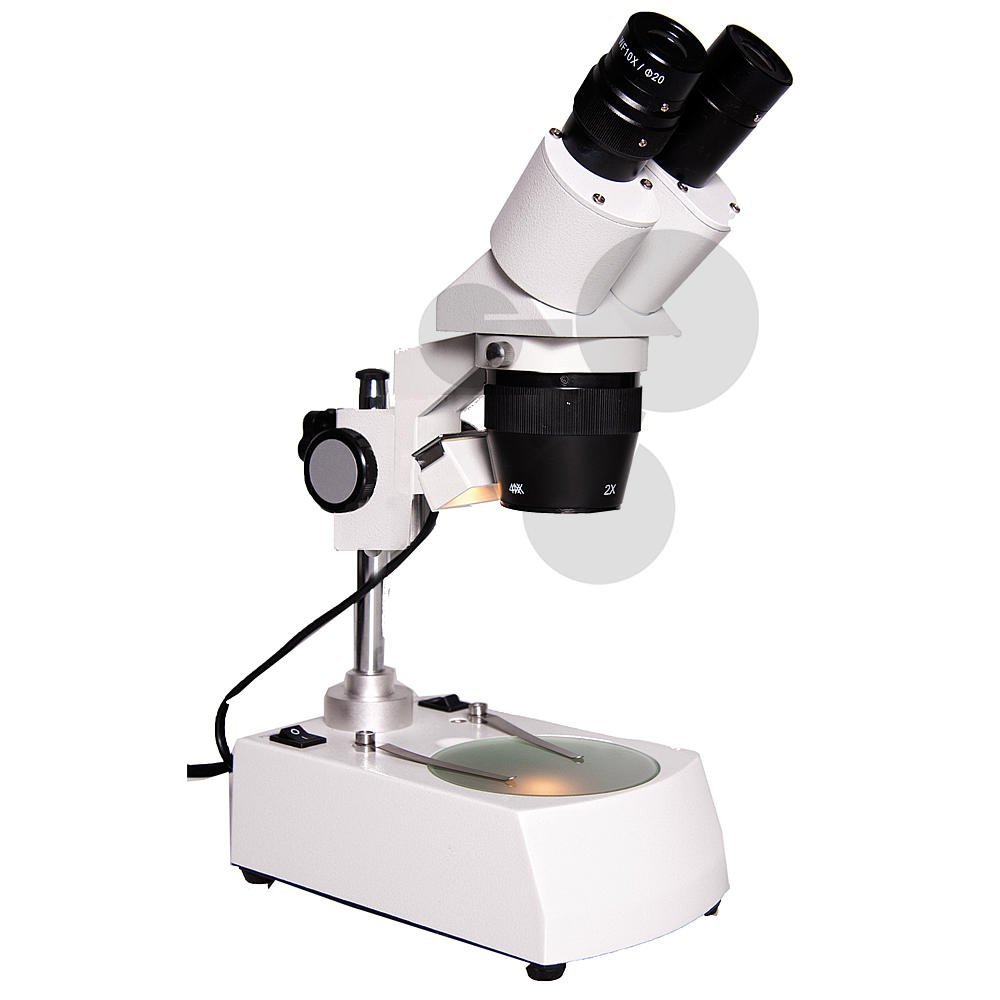 Equipée de 2 éclairages basse tension couvrant tout le champ d’observation, d’un transformateur intégré dans le socle et d’un interrupteur marche/arrêt lumière réglable séparément, cette loupe permet d’obtenir en toute sécurité : changement rapide des grossissements, image de qualité et excellente luminosité pour l’observation par transparence. Caractéristiques : Grossissement : x20 Éclairage : LED Biéclairante (sup. + inf.) Objectifs : Sur glissière Tête Binoculaire, orientable sur 360°, inclinée à 45°, avec œilletons souples Réglage interpupillaire 55 à 75 mm Objectifs : x2 Oculaires x10 grand champ, Ø 30 mm fixés par vis Champ d’observation : 10 mm en x20 Distance de travail : 76 mm Amplitude de réglage (mm) : 100 mm Disque de la platine : réversibles noir/blanc et translucide Réglage : dioptrique Sur 1 tube • Livré avec housse, clé de réglage Alimentation : Transformateur 12 V intégré dans socle, cordon 2 P+T